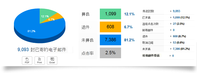 使用我们的追踪及分析数据来衡量您的电子邮件绩效
