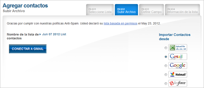 Importa los contactos de Gmail a tu cuenta de Benchmark con esta integración segura. Los contactos mantendrán la configuración de grupo creada en Gmail con los campos que hayas especificado durante el proceso de importación. Puedes conectar tu cuenta de Gmail, ya sea en la sección “Lista” de tu panel o en la configuración de tu cuenta. Es un proceso rápido y seguro que puedes activar o desactivar en cualquier momento.