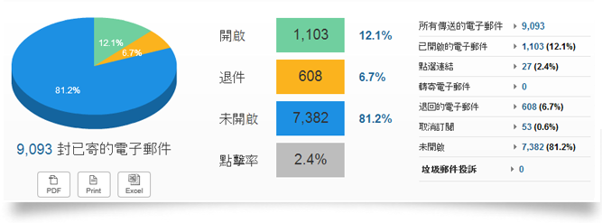 - 依照電子報名稱、傳送日期來瀏覽分析報告