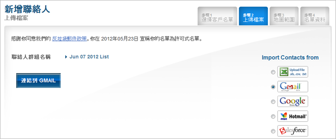 此整合功能可以將Gmail聯絡人安全匯入Benchmark Email帳戶。聯絡人會依Gmail的原始群組設定匯入,但在過程中有特定欄位可供修改。你可以在操作介面的[聯絡人群組]或[我的帳戶]中連結Gmail。整合快速、安全而且可以隨時啟用或停用。