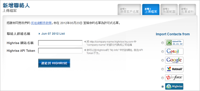一次匯入所有Highrise客戶名單
