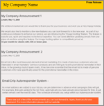 當你開始發佈新聞稿時,也是意謂著你的企業己達到一定的規模。我們完全了解這一點。這也是為什麼我們建立了新聞發佈範例,你再也不用浪費時間重新設計或修改版面! 選擇一個範本,輸入公告內容後,就可立即傳送了!